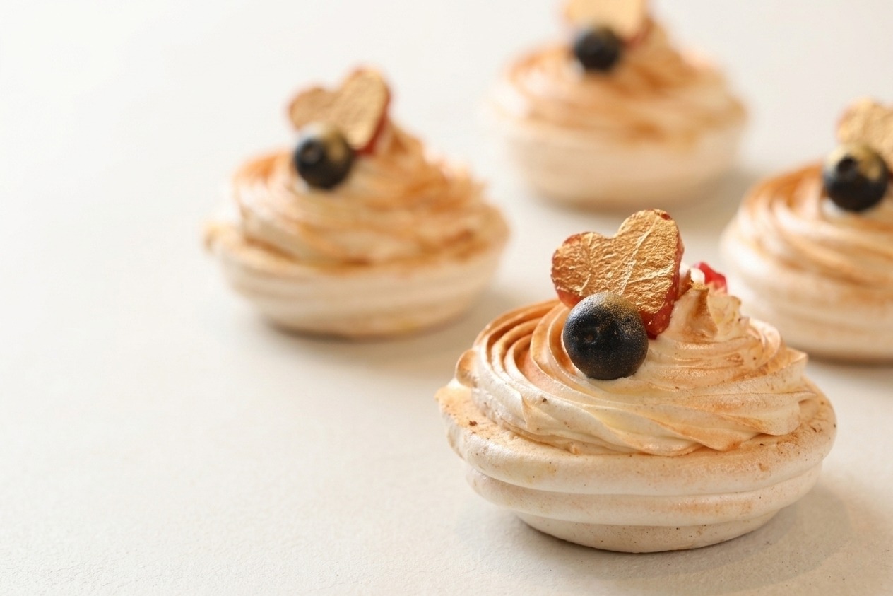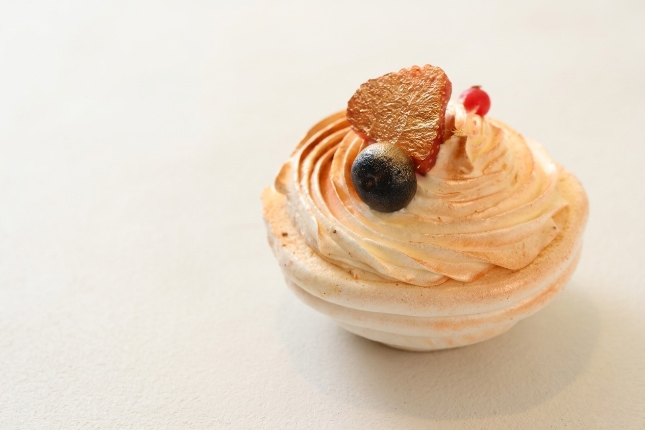 Meringue, confiture framboise.